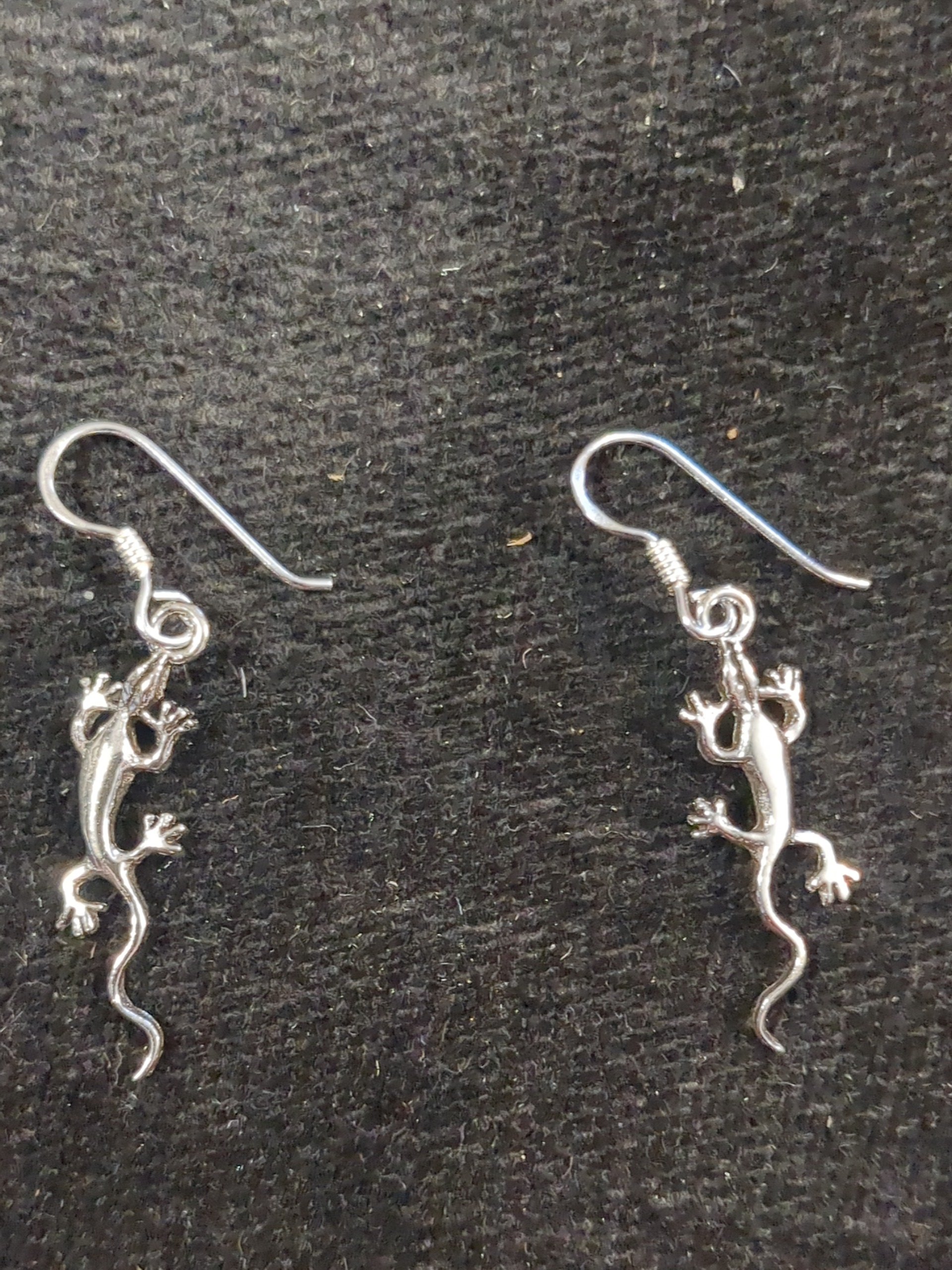 Silver gecko drop earrings